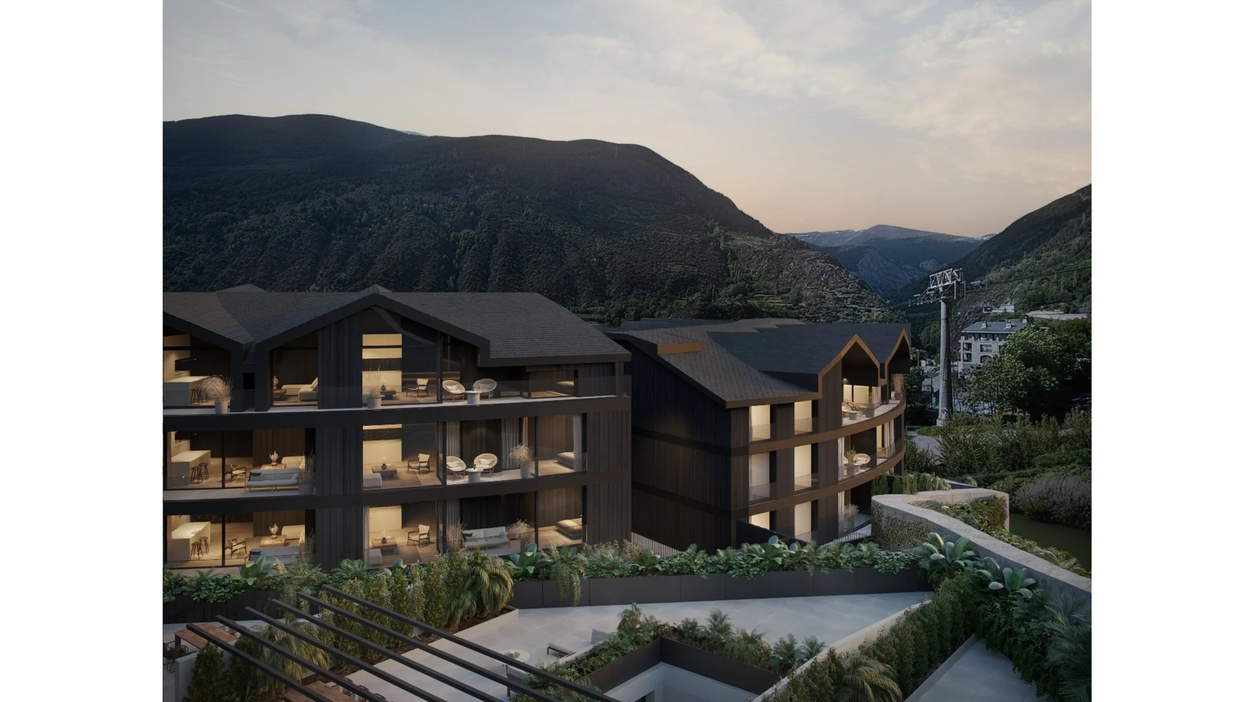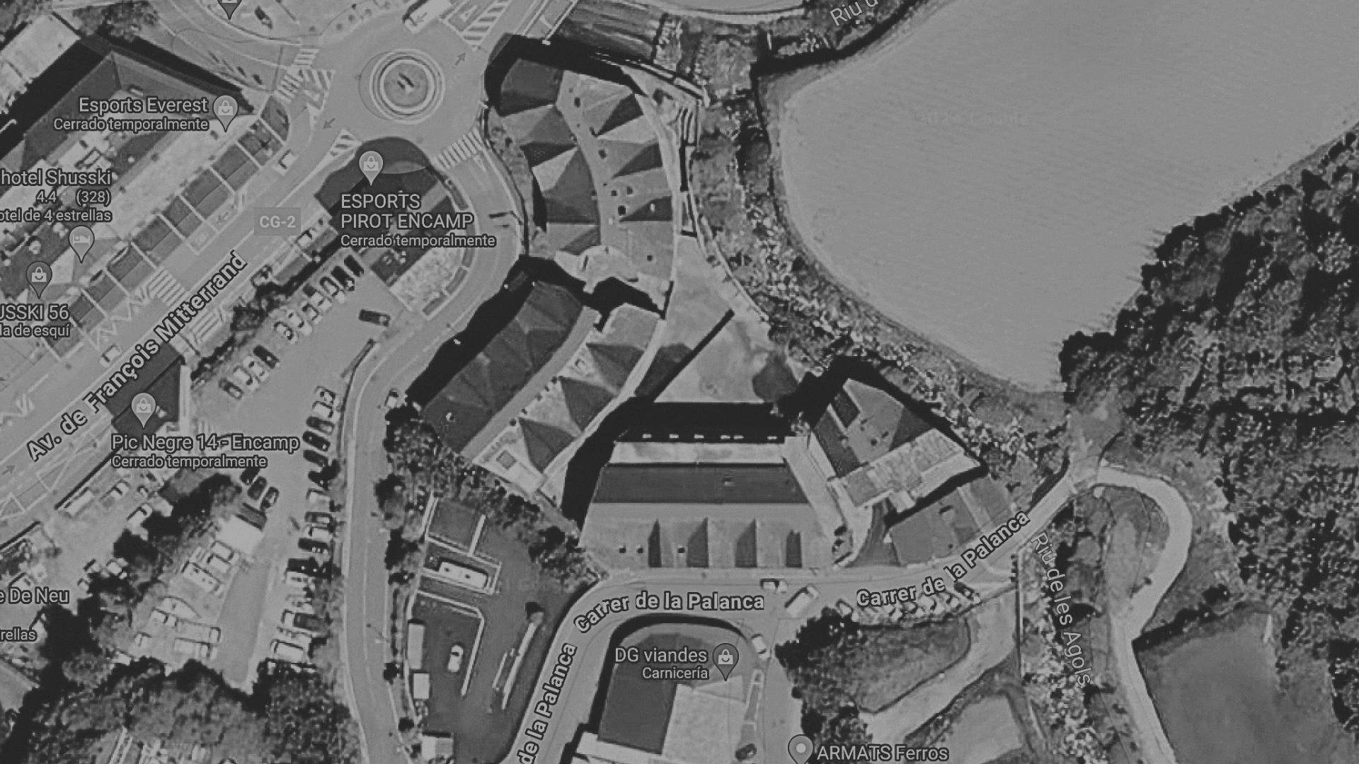 Este edificio se encuentra entre el bloque A y el bloque C, bordeando la Carretera dels Cortals. Todos los bloques mantienen la misma línea arquitectónica moderna y elegante.